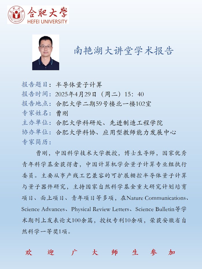 【南艳湖大讲堂】半导体量子计算