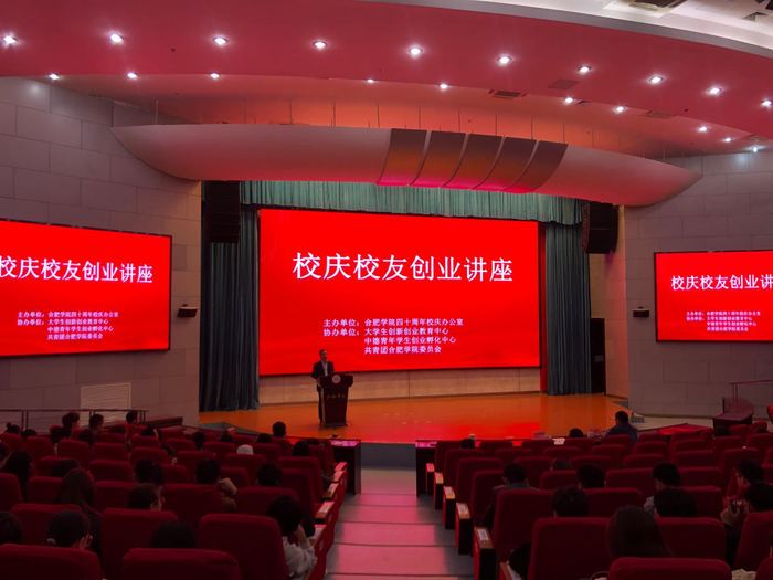 10月29日下午,由大学生创新创业教育中心和共青团合肥学院委员会共同举办的“校庆校友第一期创业讲座”在图书馆A报告厅举行。首期讲座邀请了优秀校友李殿国、王愿分享创业历程和创业理念。