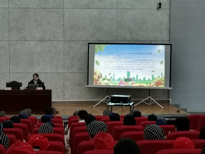 为进一步强化学校食品安全监管,防范食品安全事故的发生,提升我校餐饮服务企业食品安全管理水平,我校于4月2日下午在图书馆报告厅召开食品安全知识讲座。合肥市食品卫生监督管理局餐饮服务安全监督管理处主任燕静受邀主讲,公管处副处长陈晟主持,全体食堂从业人员参加了培训会。