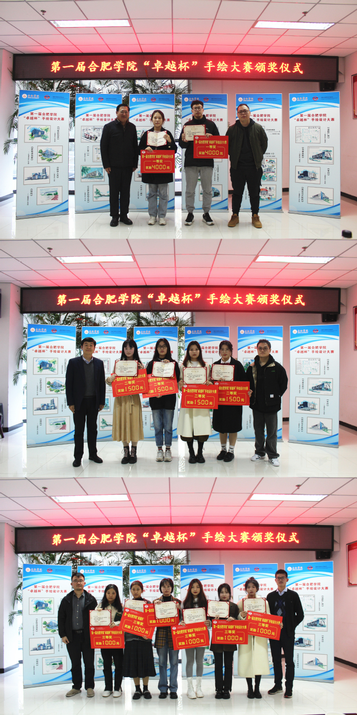 随后,朱涛宣布了合肥学院第一届“卓越杯”手绘设计大赛获奖名单。参会嘉宾为获奖学生颁奖。