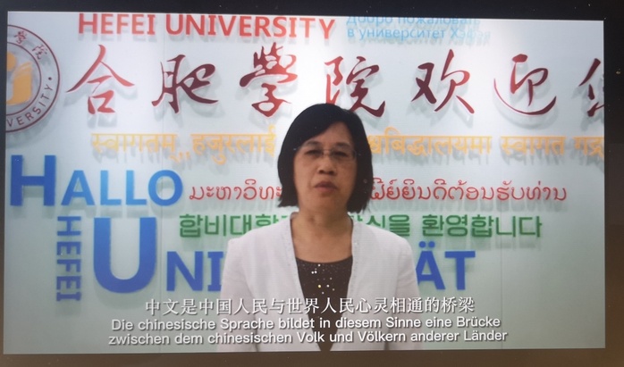 Wu Chunmei sagte in ihrer Rede, dass die Freundschaft zwischen den Nationen in der Nähe der Menschen liege und die Nähe der Menschen in der Verbindung der Herzen liege. Chinesisch schlägt eine Brücke zwischen den Herzen des chinesischen Volkes und den Menschen der Welt. Die Universität Hefei hat ein Konfuzius-Institut in Deutschland gegründet und das deutsche Finale des Wettbewerbs Chinese Bridge ausgerichtet. Sie wünschte allen Teilnehmern gute Ergebnisse und hoffte, dass Chinese Bridge die Brücke schlagen und das Band des Austauschs zwischen den beiden Völkern knüpfen werde.