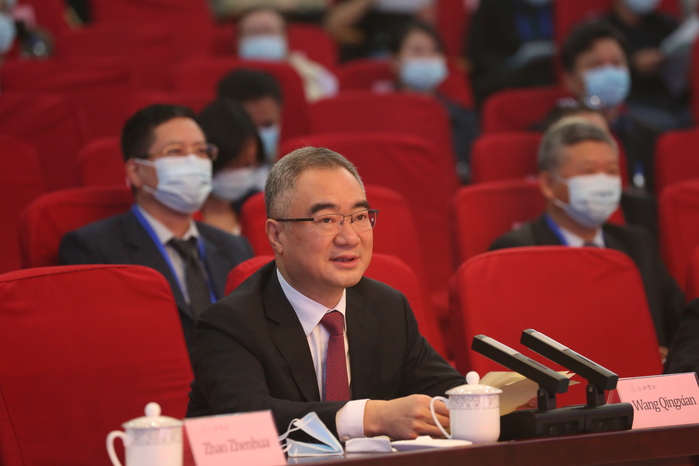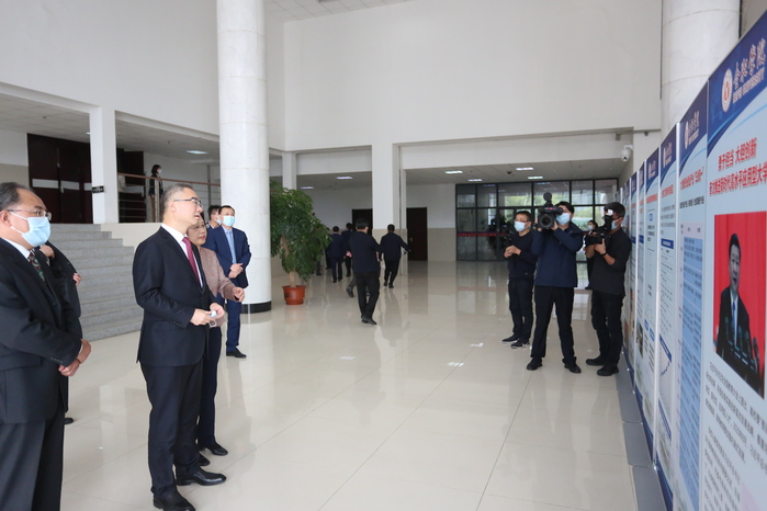 Vor der Eröffnung besuchte Wang Qingxian in Begleitung von Wu Chunmei, der Präsidentin der Universität Hefei, die Ausstellung über die Errungenschaften der Bildungsreform der Universität Hefei und hörte sich den Arbeitsbericht an. Wu Chunmei berichtete über die Erforschung und Praxis der Hochschulreform des dualen Systems und sagte, dass die Universität Hefei stets an der „lokalen, anwendungsorientierten und internationalen“ Positionierung festgehalten und aktiv den Aufbau einer anwendungsorientierten Hochschule auf hohem Niveau vorangetrieben,  das fortschrittliche Konzept des dualen Systems aus Deutschland übernommen, sich auf die lokalen strategischen Schwellenindustrien konzentriert, die Zusammenarbeit mit der deutschen Continental-Gruppe, Volkswagen und anderen Unternehmen vertieft und hochqualifizierte Fachkräfte mit internationalem Weitblick und Anpassung an den internationalen Wettbewerb gefördert habe.