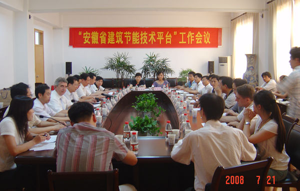 在这次研讨会上,赖默教授从中国既有建筑的改造与维修方面说起,并以杭州市一座政府办公大楼改造的成功案例介绍了中国既有建筑的改造与维修的可行性。他还依据其长达二十年的研究得出,可根据气候环境的差异选择合适的建筑材料,能够达到节能和延长建筑物使用寿命的结论。在此之后的3天里,赖默教授和合肥学院建筑工程系的教授们一起,以合肥学院既有建筑——教工宿舍为实例,开展了题为“既有建筑低碳设计”的workshop活动,用创新概念完成既有建筑低碳设计的相关建筑设计、节能分析计算和建筑施工图方案。