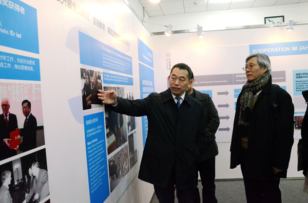 会后,张文兵陪同韩南大学一行参观了中德共建合肥学院30周年成果展。