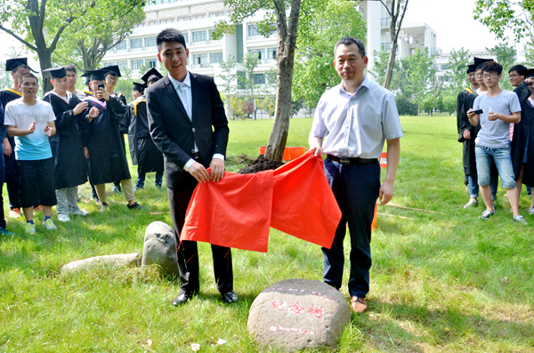 仪式最后,张文兵与毕业生代表为纪念树揭牌,“纪念树”成功落根。