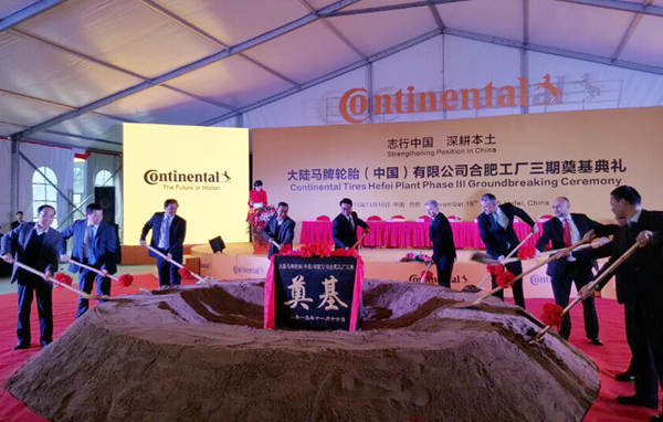 当日,合肥市市长张庆军、大陆集团轮胎事业部执行副总裁博卡·科勒、合肥海关副关长贾江、大陆集团乘用车胎部亚太区执行副总裁冯贺飞、合肥市常务副市长韩冰等出席了奠基典礼。