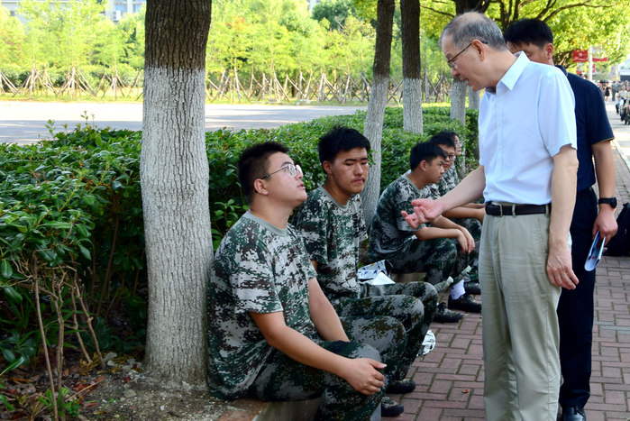 9月18日下午,党委书记王其东与相关职能部门负责人一同前往军训现场慰问学生和教官。“适应学校的环境吗?”“天气炎热,注意防暑降温。”王其东关切地询问新生身体健康情况,并鼓舞大家在军训期间增强个人体魄,厚植爱国情怀,培养集体主义精神和吃苦耐劳精神,为未来大学四年的学习生活打下一个坚实的基础。