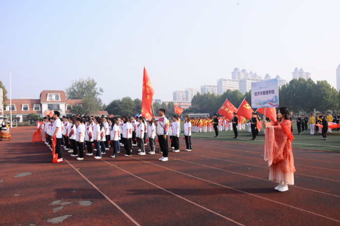 刘建中致开幕词。他表示,体育承载着国家强盛、民族振兴的梦想,体育强则中国强。学校始终秉承“以学生为本”的理念,坚持把“健康第一,终身体育”作为体育工作的目标,不断推进体育课教学俱乐部制改革,让每个学生都能找到适合自己的体育锻炼项目,让学生喜欢体育,乐于锻炼,并在体育锻炼中培养健康意识、学会锻炼方法、弘扬体育精神。我校体育教育教学俱乐部改革稳步推进,成绩显著,我校学子在国际国内各类体育赛事中取得较多优异成绩。今年8月份召开的成都第31届世界大学生夏季运动会上,我校唐君瑶同学获得女子重剑团体赛金牌、兰明豪同学获得男子重剑团体赛银牌,充分展示了我校高水平运动员的培养成果,为母校赢得了荣誉。体育不仅强健了我们的身体素质,也丰富了我们的校园生活,也为学校各项事业发展和“高水平应用型大学建设”注入了生机活力。最后,他预祝本届田径运动会取得圆满成功,号召同学们以民族复兴为己任,以拼搏进取为常态,在酣畅的运动中,享受超越自我的人生乐趣;在你追我赶的竞争中,锤炼力争上游的人生斗志;在齐心协力的合作中,诠释互助共赢的人生意义。