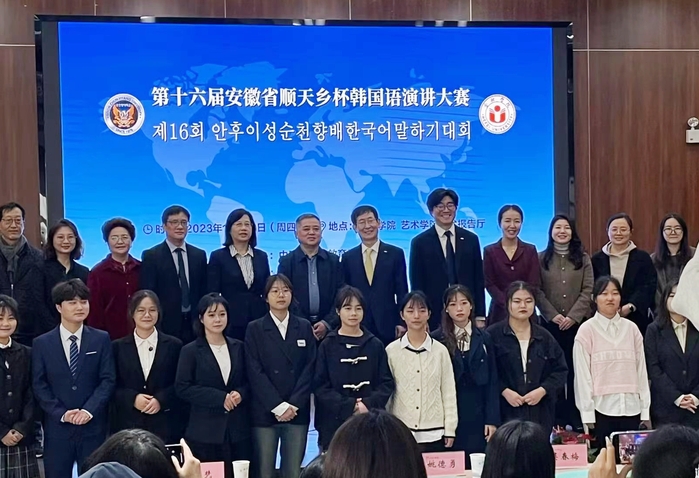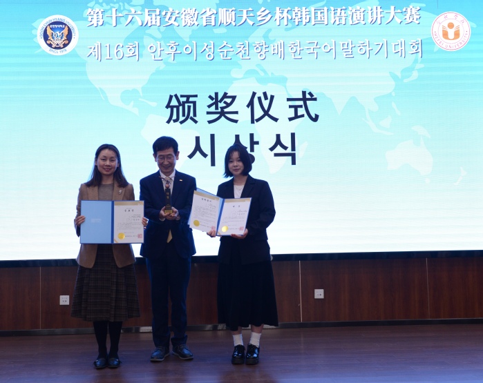 据了解,顺天乡杯韩国语演讲比赛是安徽省韩国语学科唯一的全省级赛事,由安徽省教育厅主办,顺天乡大学、合肥学院承办,截至目前已成功举办16届,吸引了安徽省内10余所高校的朝鲜语相关专业学生参加。本届大赛经过选拔,共有16名选手进入决赛。