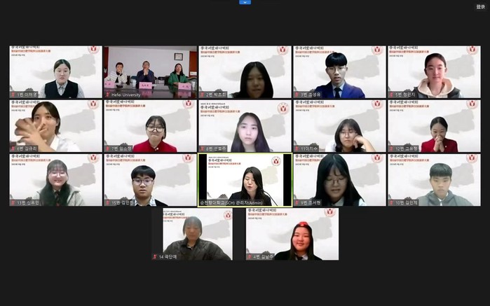 11月7日,由合肥学院主办、韩国顺天乡大学承办的第八届“合肥学院杯”汉语演讲大赛在韩国顺天乡大学成功举办。来自顺天乡高中、仁川世元高中等多所学校的韩国学生参赛,最终有15名选手进入决赛。院长吴春梅和韩国顺天乡大学副校长金瑃淳通过视频参加决赛开幕式并致辞。